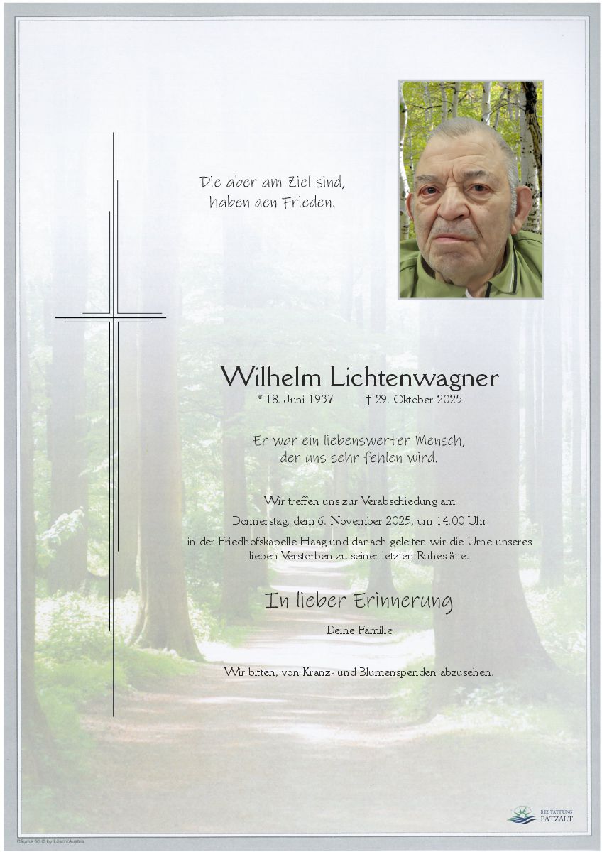 Wilhelm Lichtenwagnerverstorben am 29. Oktober 2025 Beisetzung in Haag |