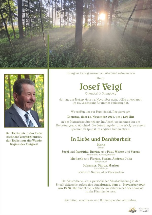 Josef Veiglverstorben am 14. November 2025 Verabschiedung in Strengberg |
