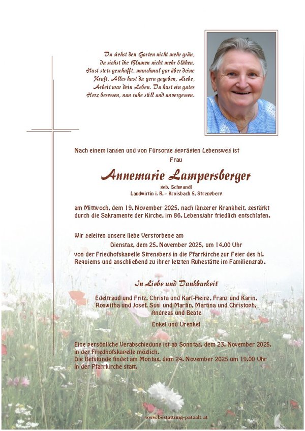 Annemarie Lampersbergerverstorben am 19. November 2025 Beerdigung in Strengberg |