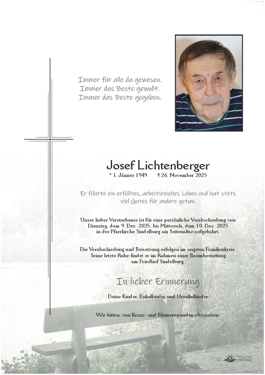 Josef Lichtenbergerverstorben am 26. November 2025 Beisetzung in Sindelburg |