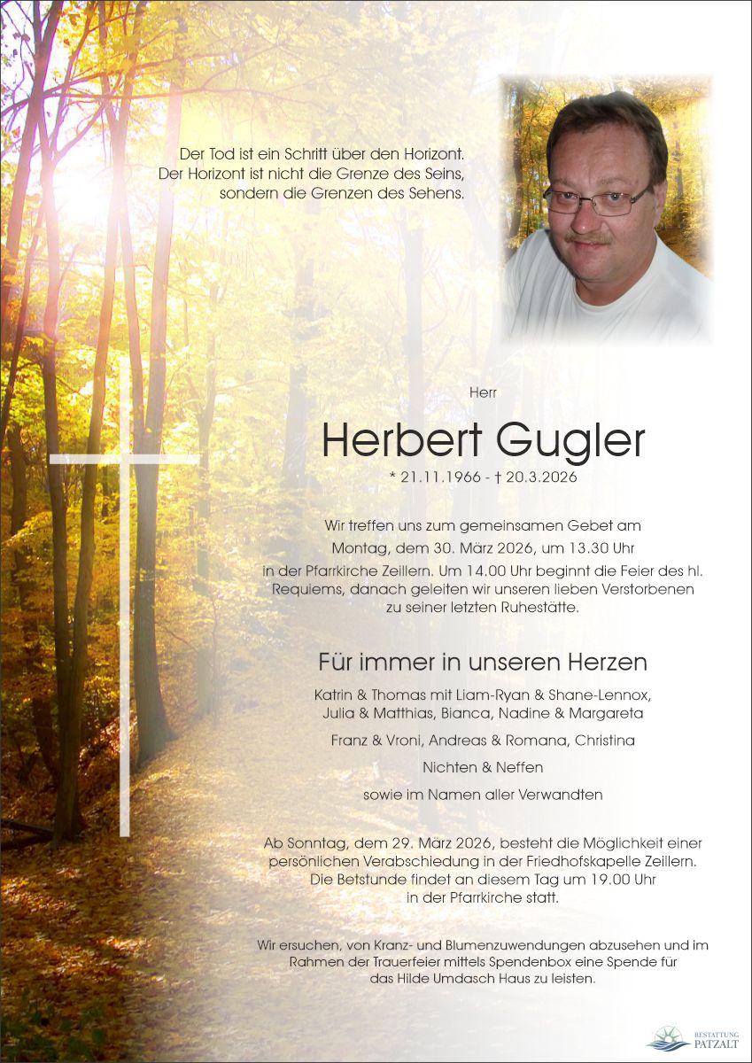 Herbert Guglerverstorben am 20. März 2026 Begräbnis in Zeillern |