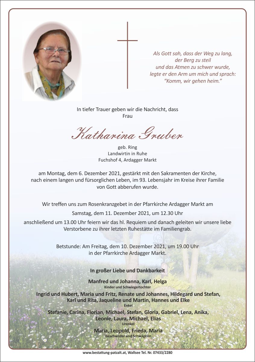 Katharina Gruberverstorben am 06. Dezember 2021 Beerdigung in Ardagger Markt |
