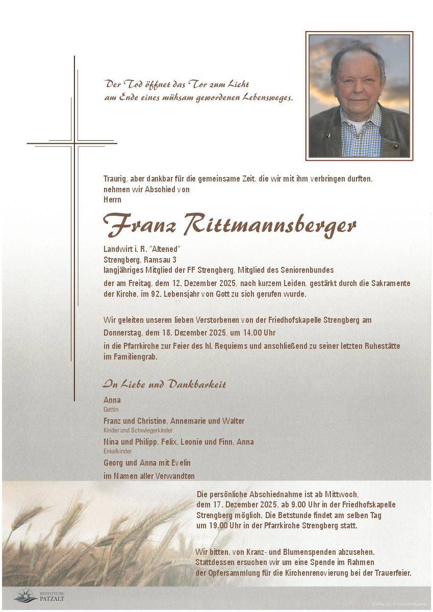 Franz Rittmannsbergerverstorben am 12. Dezember 2025 Beerdigung in Strengberg |