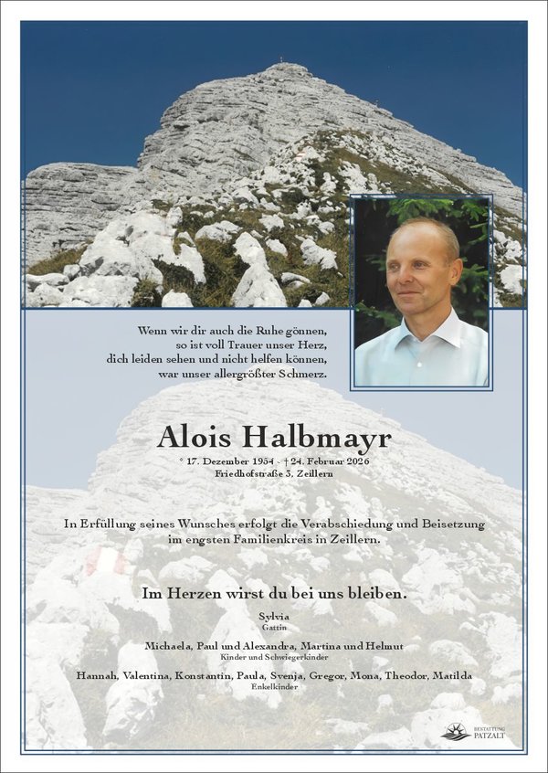 Alois Halbmayrverstorben am 24. Februar 2026 Beisetzung in Zeillern |