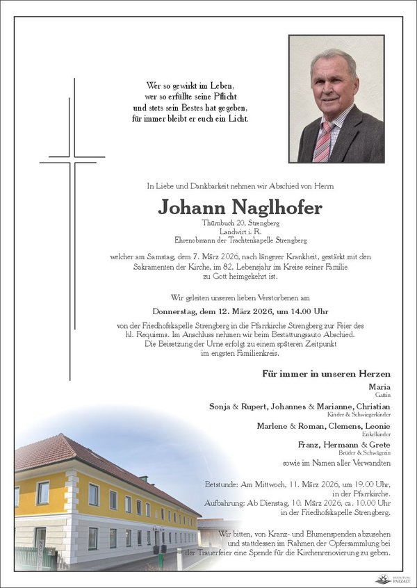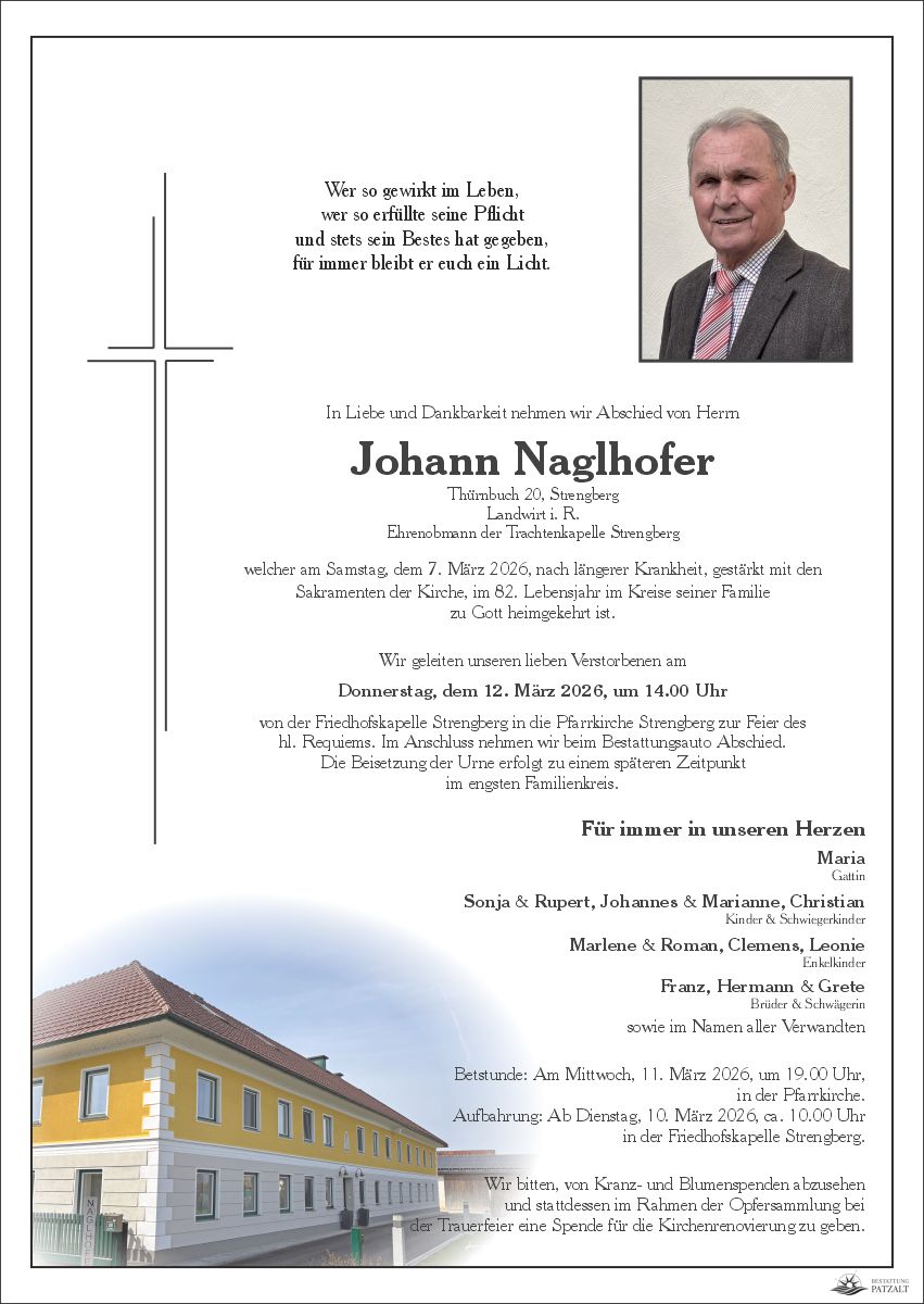 Johann Naglhoferverstorben am 07. März 2026 Begräbnis in Strengberg |